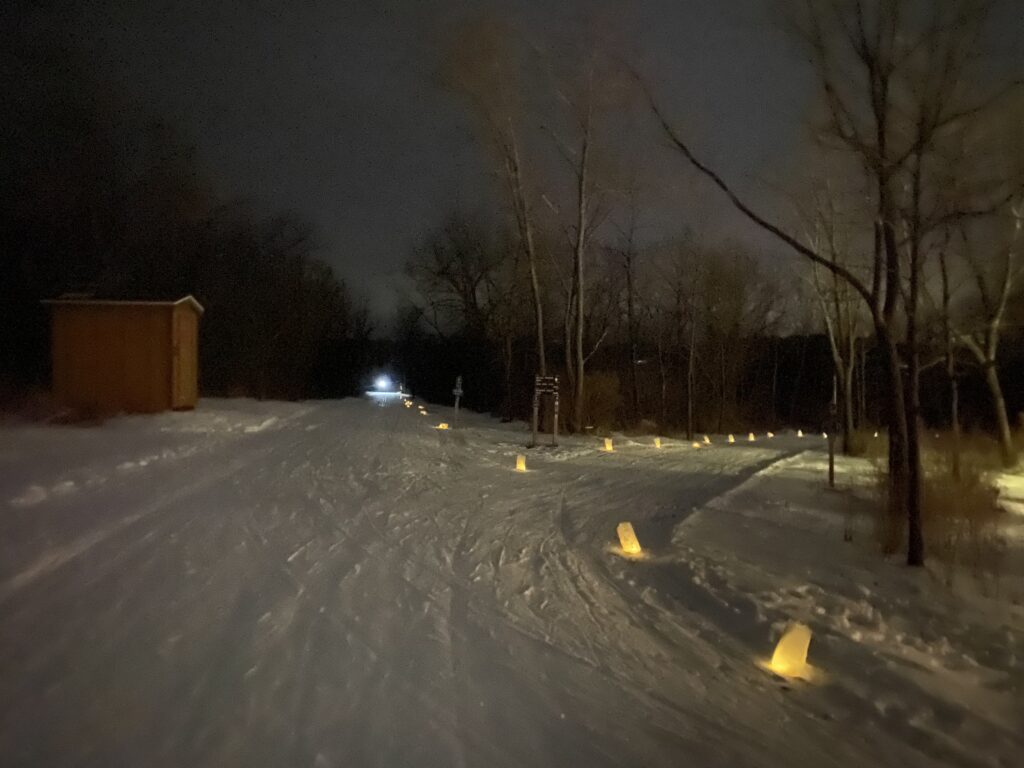We enjoyed a beautiful night for the Candlelight Ski, Snowshoe, and Hike event on February 7th. The mild weather and good trail conditions made it an enjoyable evening. We’re thankful to have enough snow for skiers this year. A big thank you to all of the volunteers who helped manage the trails and place luminaries.