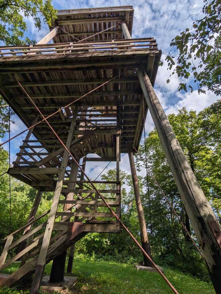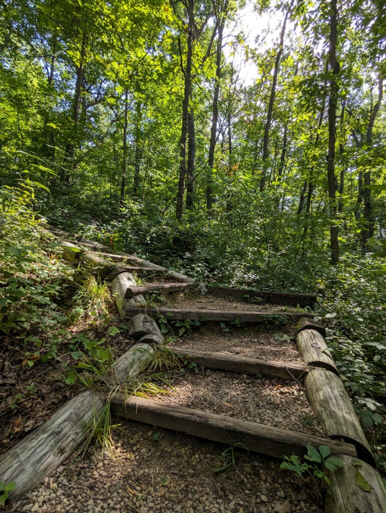 Blue Mound State Park offers great hiking trails for all types of hikers. The park supports scenic woodland trails, prairie walks, and natural springs. Ambitious hikers can partake in challenging stair climbs and rocky trails. The top of the park also features the East and West Towers. These towers have stairs and a fantastic view of the Driftless Region from the top of the mound.